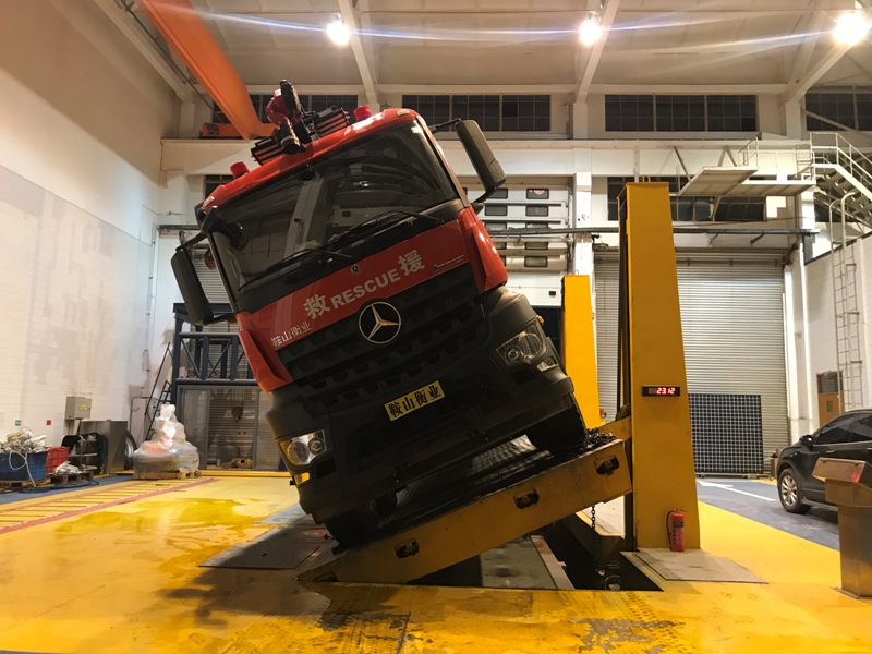 車輛底盤為德國(guó)奔馳Arocs4158底盤,發(fā)動(dòng)機(jī)型號(hào)OM473LA,功率:425kw,國(guó)六排放標(biāo)準(zhǔn),軸距:1750mm+4600mm+1350mm,罐體材質(zhì):采有優(yōu)質(zhì)不銹鋼板304;容罐容量:水15000kg,泡沫3000kg;消防泵為美國(guó)大力,型號(hào)為ZSP2650;流量:10000L/min;負(fù)壓式泡沫比例混合器,型號(hào)為英國(guó)FSA;舉升臂頂端消防炮Ⅰ,型號(hào):3482+5177美國(guó)阿密隆,流量80L/S,射程:水≥80m,泡沫≥70m;車體尾部消防炮Ⅱ,型號(hào):DICODOPLUS 150法國(guó)博克,流量:10000L/M,射程:水≥110 m,泡沫≥100m,大流量消防槍,車頂前部設(shè)有舉升高度為12米的臂架。 整車器材箱卷簾門防水槽采用專用鋁合金開模型材,型材上加裝LED照明燈帶,使整車形成環(huán)繞式照明,既美觀且照明效果又好。車頂前部設(shè)有舉升高度為12米的臂架,頂端加裝有進(jìn)口電控消防炮。車頂后部設(shè)有進(jìn)口電控大流量消防炮。箱體內(nèi)部器材框架采取了專用的的擋板型材,有效的保證了內(nèi)部器材固定的穩(wěn)定性,同時(shí)使器材標(biāo)牌整齊化一,清晰明了。車頂兩側(cè)女兒墻內(nèi)部加裝有LED照明燈帶,可滿足夜間工作人員在車頂操作時(shí)對(duì)照明需求。配備大流量消防槍,可噴射水、泡沫、等滅火介質(zhì),滅火效率極高。