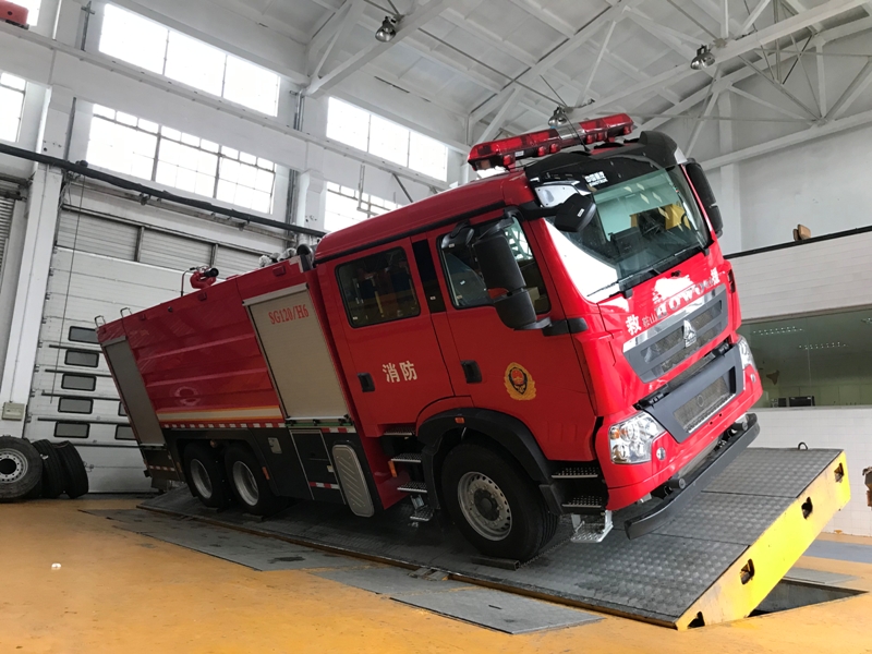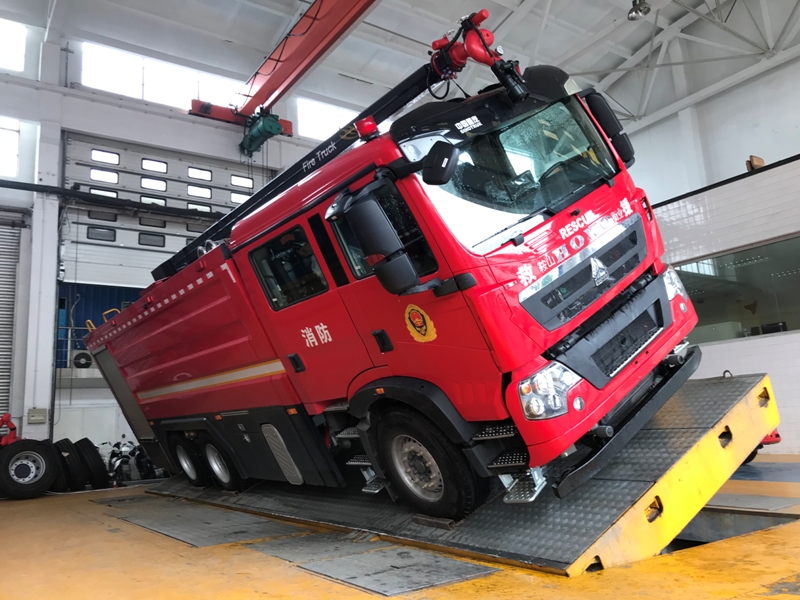 車輛底盤為豪沃ZZ5357TXFV464MF5底盤,發(fā)動(dòng)機(jī)型號(hào)MC11.46-61,功率:341kw,國(guó)六排放標(biāo)準(zhǔn),軸距4600+1400mm,罐體材質(zhì):優(yōu)質(zhì)碳鋼板;容罐容量:水18000kg;消防泵為上海雄真CB10/80-XZ;消防炮為威斯特PSKD60W,舉升高度10.5米。 車輛外觀造型美觀,且內(nèi)部空間寬敞舒適,滿足作戰(zhàn)人員需求。整車器材箱卷簾門防水槽采用專用鋁合金開模型材,型材上加裝LED照明燈帶,使整車形成環(huán)繞式照明,既美觀且照明效果又好。器材箱卷簾門下部翻轉(zhuǎn)踏板,采用一體式鋁合金擠壓型材,模塊化組裝,增加了整車的品質(zhì)。箱體內(nèi)部器材框架采取了專用的的擋板型材,有效的保證了內(nèi)部器材固定的穩(wěn)定性,同時(shí)使器材標(biāo)牌整齊化一,清晰明了。